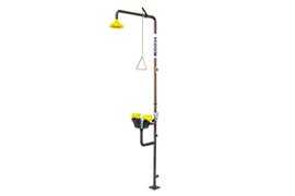 shower is pull rod operated and the eyewash is operated by a push valve. The showers have a drain port.
